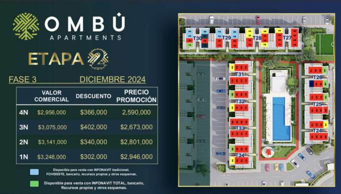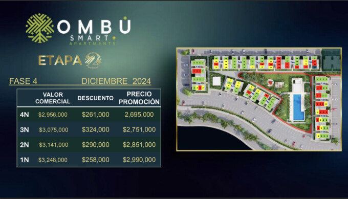 Te comparto que este mes en Ombú Apartments, tenemos para ti más de $350,000 de descuento 🤩 y los precios finales quedarían desde: