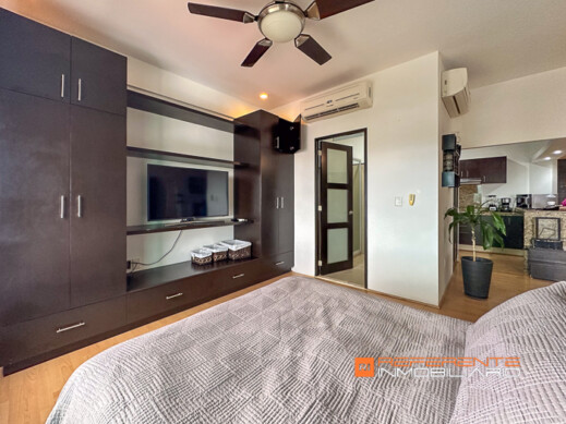 Además la recámara con colchón queen size mas closet y baño completo. Tendrás acceso al roof garden del edificio con 3 jacuzzis, camastros, pérgolas y palapa con baño y bodega para tus eventos.